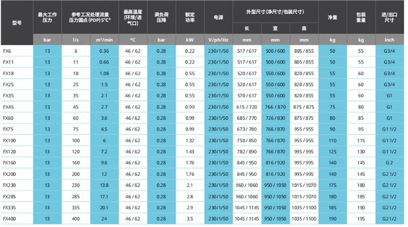 Utrzymuj wydajność chłodzenia w różnych warunkach pracy i utrzymuj stabilny ciśnieniowy punkt rosy, aby uniknąć ryzyka zamarznięcia i zablokowania kondensatu.