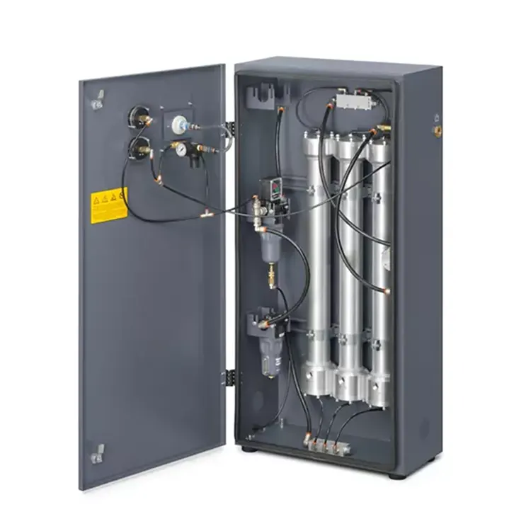 Jeśli szukasz ekonomicznego rozwiązania do wytwarzania azotu w punkcie poboru, które spełnia Twoje wymagania dotyczące N₂ przy niskim przepływie, preferowanym wyborem będzie zintegrowany membranowy generator azotu. Ten membranowy generator azotu typu plug-and-play jest kompaktowy, niezawodny i wyjątkowo łatwy w utrzymaniu.