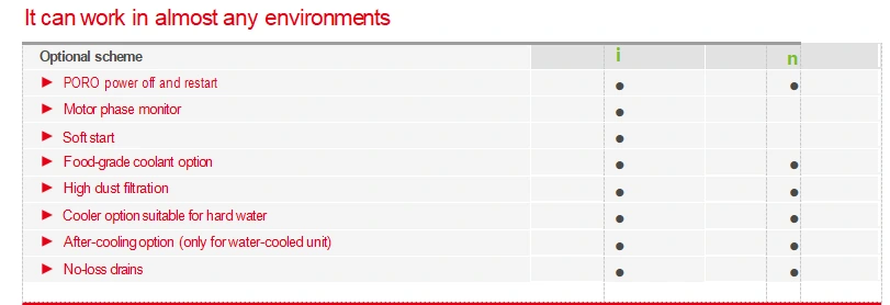 Nasze sprężarki oferują chłodziwa dopuszczone do kontaktu z żywnością, chłodnice o wysokiej filtracji pyłu i twardej wody oraz inne opcje dostosowane do trudnych warunków, które mogą spełnić Twoje różnorodne potrzeby.