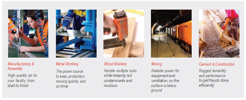 Poprawiona produktywność:Stosowanie certyfikowanych, bezolejowych sprężarek o zerowej jakości zapewnia zerowe zanieczyszczenie powietrza, eliminując ryzyko uszkodzenia produktu i odpadów.